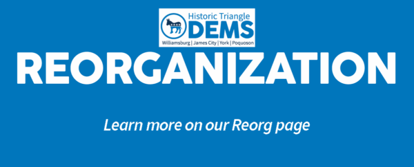 Our new bylaws passed unanimously at our Dec. 18 meeting. There are now two ways to join the Historic Triangle Democrats: sign up as a voting member, which requires you to attend meetings, unless excused by the Chair, and allows you to vote on committee business, or as a supporting member, which allows you to attend meetings, contribute to discussion and participate in all of our activities.